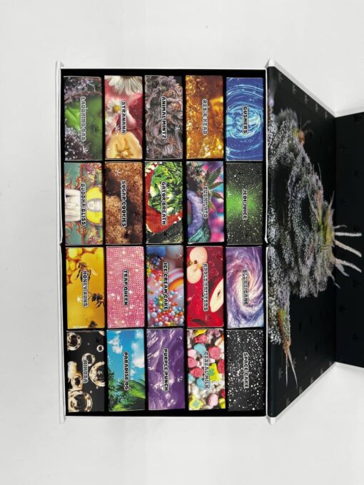 | Variation | GUSHERS, JEDI JUICE, SLURRICANE, SPACE CAKE, RESIN HEAD, ZUSHILATO, APPLE FRITTERS, CEREAL MILK, ANIMAL MINTZ, GATOR BREATH, ICE CREAM CAKE, PURPLE PUNCH, STRANANA, SUGAR COOKIES, TRAP QUEEN, PARADISE OG, LAUGHING GAS, BUDDHA BLISS, HONEY BUNS, MIMOSA, 10PK (MIXED FLAVORS), 25PK (MIXED FLAVORS), 50PK (MIXED FLAVORS), 100PK (MIXED FLAVORS) |